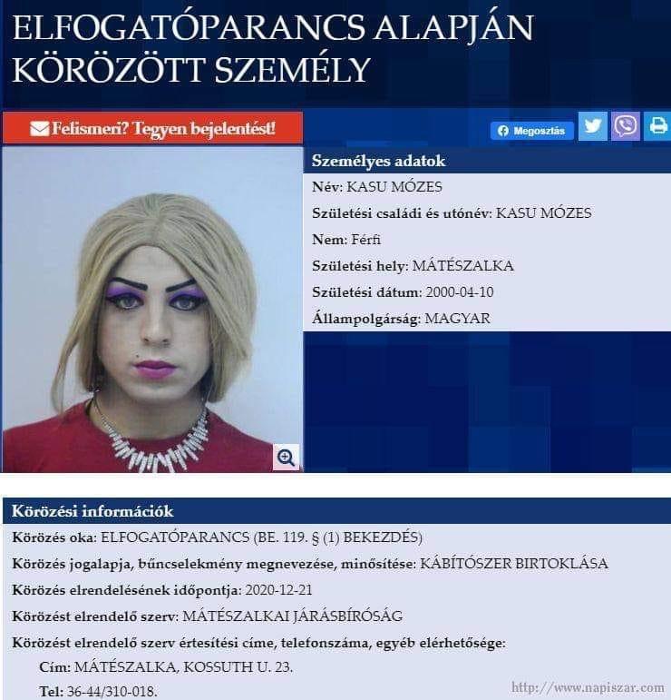 Egyre több "haladó" körözési képet kénytelen közzétenni a rendőrség, ezek nagy részét derűvel fogadja a kedves olvasóközönség (és természetesen mi magunk is), hiszen, bár az arányok tekintetében ez a néhány példány mit sem számít a cigány népességrobbanás által súlyosbított magyar demográfiai katasztrófa viszonylatában, megnyugtató, egyszersmind nevetésre is ingerlő a magukat nőnek képzelő erőforrások látványa és a tudat, hogy legalább az ő esetükben van némi esély a szaporodási lánc megszakadására.