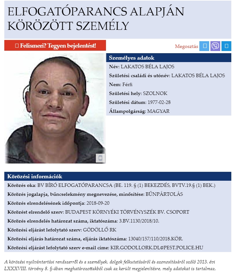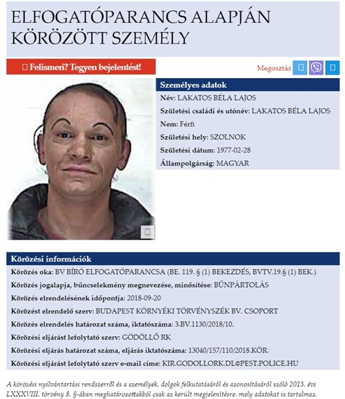 - Kezdhetnek aggódni az Érdi Rendőrkapitányság WC-keféi: garázdaság miatt keresik Balogh Robertát