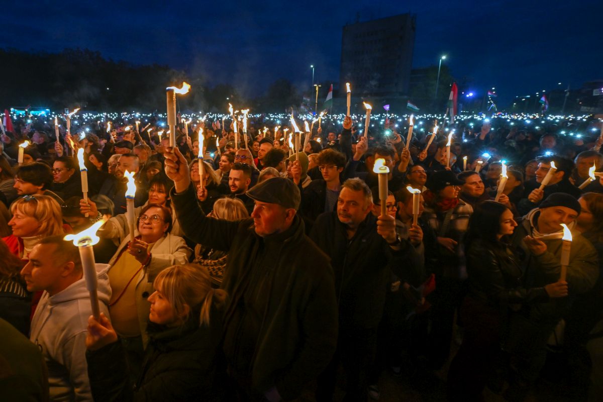 A Tisza Párt kampányzárója Debrecenben (kép: MTI/Illyés Tibor)