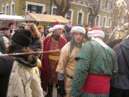 A főbb események a Városháza s az inkább törökös dzsámihoz hasonlító, új keletű katolikus templom által határolt főtéren zajlottak, ahol a színpadot s a később szerepet kapó gigantikus máglyát is fölállították. (Itt most nem térnék ki arra, hogy Mohács nem túl gazdag értékes, tetszetős műemlékekben, sőt, néhány épületet és szobrot leszámítva az egész városkép felejthető, a kőből, fémből s még ki tudja milyen anyagokból összetákolt posztmodern szörnyszülöttek pedig kifejezett merényletek a jóízlés ellen!) Délelőtt néhány néptánccsoport nyújtott ízelítőt tudásából, de a kíváncsibbak beavatást nyerhettek a busómaszk-faragás műhelytitkaiba is. Utána sokác táncház volt, pódiumra került egypár népi zenészbanda is, majd megtekinthettük a busók csónakos átkelését a Dunán.
