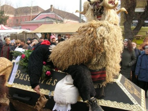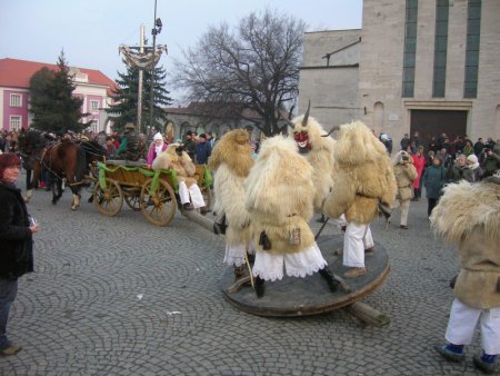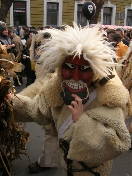 Kegyes volt hozzánk az ég, amikor (2009. február 22-én) vasárnap korán reggel egy autóbusszal s egy mikrobusszal Makóról, valamint Szegedről elindultunk a tetthelyre a Magyar Máltai Szeretetszolgálat szervezésében. Csípős hideg, ámde száraz, gyönyörű napsütéses idő volt, aminél kívánni sem lehetett ideálisabbat. Sima utazást követően még délelőtt megérkeztünk, éppen akkor, amikor kezdetét vette az egész napos vásári forgatag, így semmiről sem maradtunk le. A városközpont főutcája egyetlen nagy bazárrá alakult, az út mindkét oldalán végestelen végig sorakoztak az árusok sátrai: a népművészek, mesteremberek szebbnél szebb portékáit kínáló asztalokkal, a lacikonyhák és kürtőskalács-sütő vendégvárók, a pálinkát, forralt bort és egyéb italokat kínáló ideiglenes kocsmák, valamint a cukorka- és édességárusok tömkelege. Persze minket főként a busójárás borsos áron vesztegetett maszkjai és egyéb velejárói érdekeltek, amelyek megvásárlását bizony kevesek engedhetik meg maguknak ilyen mélyre süllyedt, mostoha gazdasági és szociális állapotban. Azért bóvli, kommersz áru is akadt bőven, de ez ma már elkerülhetetlenül hozzá tartozik minden hasonló mulatsághoz itthon és külföldön egyaránt.