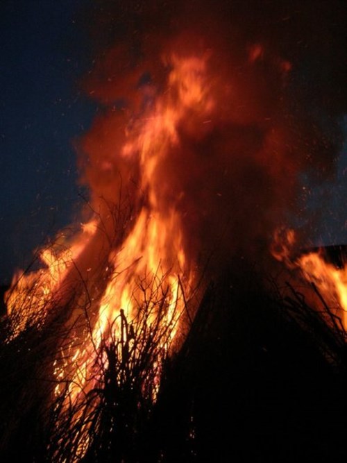 A közbeeső időt a busókkal való személyes ismerkedéssel, barátkozással, valamint intenzív kocsmalátogatással töltöttük (az éttermek, borozók, sörözők, presszók ekkorra zsúfolásig megteltek!); utóbbira bizony erős szükségünk is támadt, mivel a kinti hideg ellen a legjobb orvosság ilyenkor a belsőnket melengető tüzes nedű bármilyen formája. Lassan szürkülni kezdett, amikor vízre bocsájtották a kompról a farsangi koporsót, hogy általa végleg elvigye a telet a Duna, s immár – reményeink szerint – beköszönthessen egy enyhébb, kellemesebb évszak, a mindeneket megújító tavasz. A nap utolsó hivatalos aktusaként egy hatalmas szalmabábut helyeztek a legalább 4 méter magas máglya tetejére, majd körben, több ponton meggyújtották a tüzet. Lassan, feketén füstölögve kaptak lángra a nedves venyigék, rőzsenyalábok (no meg a rádobált sok szemét!), s előbb csak fel- felszikrázott a negyedik őselem, de azután hirtelen föllobogott az ég felé, megnyaldosva, majd végleg elemésztve a kitárt karokkal álló, néma szalmabábut. E javában pattogó, messze világító, pogány időket megidéző, varázslatos tűz és a busók mágikus körtáncának látványával búcsúztunk Mohácstól, s lelkiekben megizmosodva indultunk hazafelé, Szegedre. (Az éjszakai sokácbál sajnos már nélkülünk zajlott.)