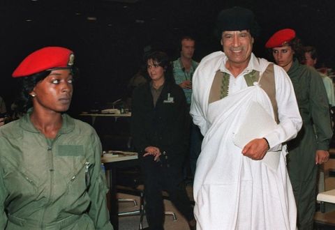 Muammár el-Kadáfi testőrnői kíséretében 1989-ben
