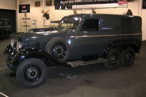 A hatkerekű ős-terepjárók a Führer személyes használatra fenntartott flottájából származnak, az értékük nagyjából 10 millió dollár. Dacára annak, hogy mai judeolibsi világ az ördöggel egyenértékűnek festi le a nemzetiszocializmus vezetőjét és Európa fennmaradásáért hősiesen küzdő Adolfot, a Harmadik Birodalom műszaki csodáinak számító alkotásai mellett nem tudnak elmenni szótlanul.