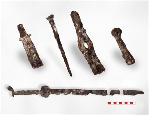 Az objektumból a jó állapotban megmaradt fegyverek mellett a korszakban szintén nem ismeretlen csonthenger-töredékek is előkerültek. Egy gödörben pedig 29,5 cm magas, fazekaskorongon készített, kétfülű edény hevert, melynek közeléből mintegy 100, rendkívül vékony bronzlemezből tekert, 0,5 cm hosszú ruhadíszt bontottak ki a NÖK régészei.