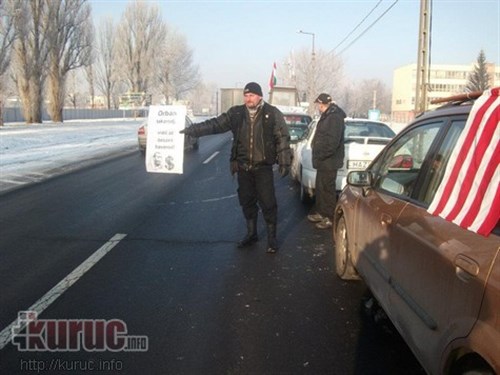 Az út menti tüntetést a magyarságot rabszolgaságba taszító Európai Unió ellen hirdették meg, de felemelték szavukat és az út mentén tábláikat a helyi szocialista népnyúzók és az országot katasztrófába sodró kormány ellen is.