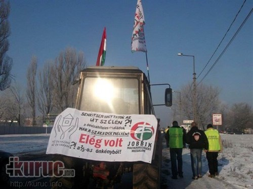 Az útlezáráson Endrésik Zsolt országgyűlési képviselő megyei Jobbik-elnök is megjelent Nagyházi Zoltánnal, a Jobbik helyi elnökével, megyei alelnökkel együtt.