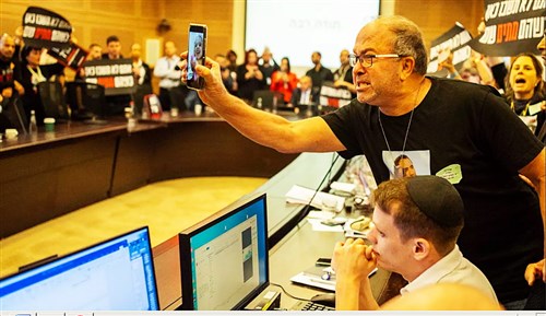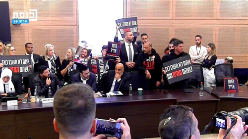 Az Iszlám Ellenállási Mozgalom által 2023. október 7-én izraeli területről a Gázai övezetbe hurcolt, s ott túszként fogva tartottak több tucat hozzátartozója ma délelőtt berontott az izraeli parlament pénzügyi bizottságának ülésére. A Mose Gáfni elnökletével kezdődő ülésen jelen volt Amír Jaron, az Izraeli Jegybank elnöke is. A feldühödött hozzátartozók – akik már nem először hatoltak be a pénzügyi bizottság ülésére – kiabálva, kezükben a túszok hazatérítését követelő transzparensekkel fölsorakoztak a kerekasztalnál helyet foglaló bizottsági tagok mögé, és megkezdődött a tiltakozó demonstráció.