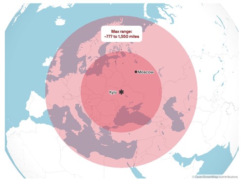 - Hatótávolsága: 1 250–2 500 km (ami elegendő Moszkva eléréséhez Ukrajnából)