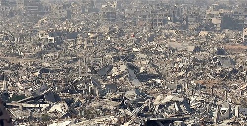 Az izraeli hadsereg vendéglátását „élvezve”, szigorú felügyelet mellett John Irvine brit televíziós tudósító stábjával beléphetett a holdbéli tájra emlékeztető, lepusztított Gázai övezet északi részébe. A képek láttán még inkább egyértelművé válik az, amit eddig is egyre többen állítottak: az izraeli hadsereg nem azért hatolt be a Gázai övezetbe, hogy legyőzze, fizikailag megsemmisítse a Hamász harcosait, hanem azért is, hogy a népirtás mellett teljesen elpusztítsa a palesztinok infrastruktúráját, életterét. S akik életben maradnak, ne legyen hová visszamenniük.