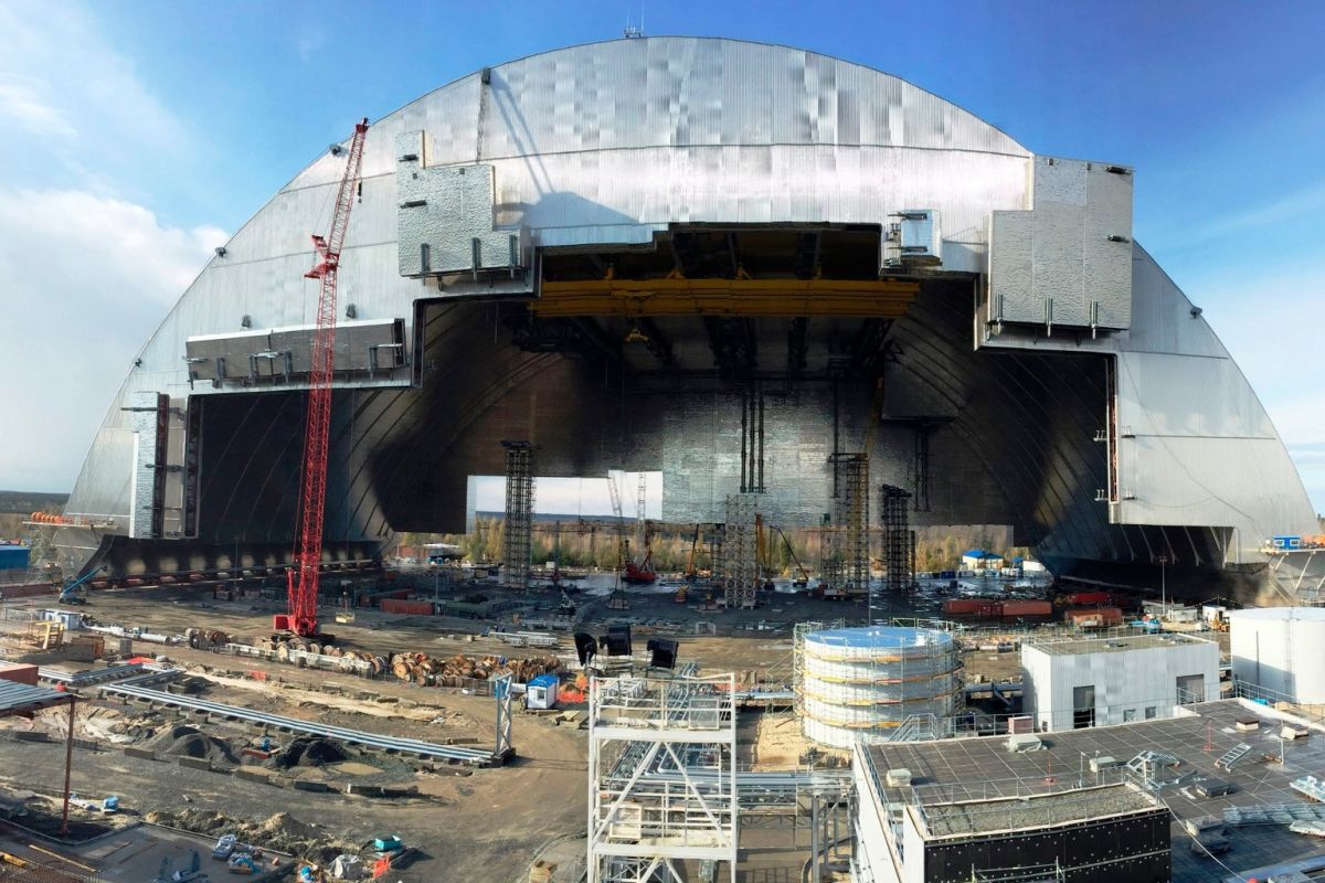 A csernobili atomerőmű 1986-ban felrobbant negyedik blokkja fölé emelt 36 ezer tonnás, 110 méter hosszú, 257 méter széles és 105