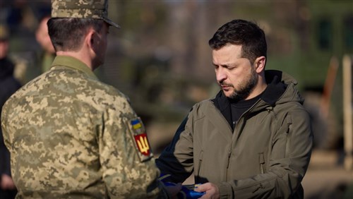 Volodimir Zelenszkij állami kitüntetéseket ad át Ukrajna védőinek a Rakétaerők és Tüzérség Napja, valamint a Műszaki Csapatok Napja alkalmából 2023. november 3-án (Fotó: Ukrán Elnöki Sajtószolgálat)