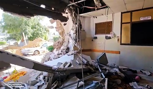 A kórház egyik helyisége 2023 decemberében – Izrael itt kereste a Hamász rakétaindító állását… (fotó: Al-Dzsazírá)