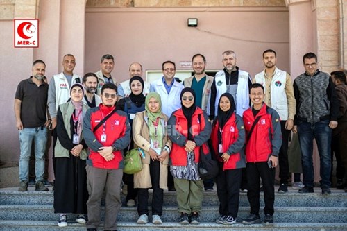 Az Indonéz Kórház orvosai és adományozó indonéziai vendégek, középen Dr. Marván esz-Szultán orvos igazgatóval (fotó: mer-c.org)