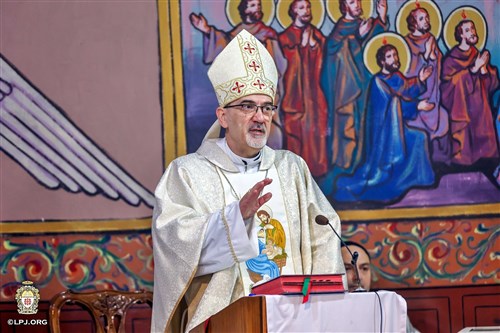 Pizzaballa bíboros ezután dicsérte a Szent Család-templom maroknyi római katolikus hívét, amiért ebben a szörnyű időszakban is erősek és állhatatosak maradtak hitükben. Az izraeli népirtást túlélő palesztinokat e szavakkal bátorította, biztatta, s egyben üzent a palesztinok elűzését tervező népirtó zsidóknak:
