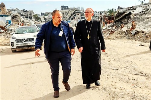 Pierbattista Pizzabella, Jeruzsálem latin pátriárkája háromnapos látogatást tett a romokban heverő Gázai övezetben, ahol meglátogatta a humanitárius segélyező szervezeteteket, a még működő kórházakat, keresztény testvéregyházakat, a zsidók által lakóhelyükről elüldözött, s most nyomorúságos sátrakban tengődő palesztin családokat, s leginkább a maroknyi, megtizedelt római katolikus közösséget Gázavárosban. Pizzaballa bíboros a gázavárosi Szent Család-templomban karácsonyi szentmisét celebrált, keresztelt, kilenc gyermeket elsőáldoztatott, karácsonyi ajándékot vitt a gyermekeknek és az újjáéledés, az újjáépítés és a szülőföldön maradás reményét a Gázai övezet népének – írja az lpj.org.