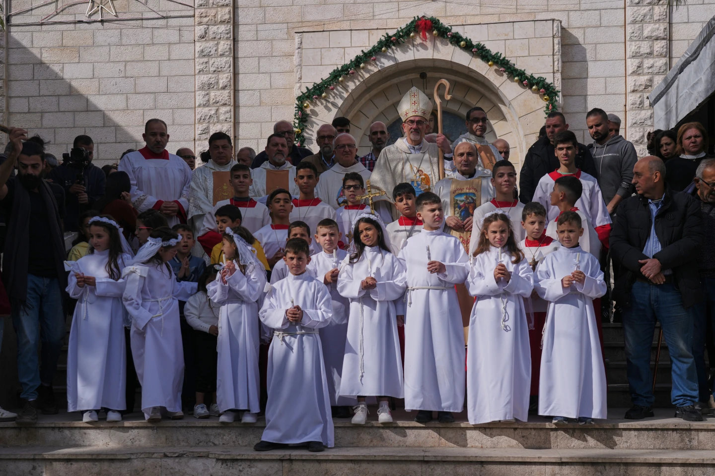 A nagy karácsonyfa fényei és az ünnepi díszek sem tudták azonban elrejteni a gázai háború rettenetes következményeit. A parányi gyülekezet úgy döntött, a sanyarú körülményekre tekintettel az ünneplést egy imádságra és rövid családi összejövetelekre korlátozza. Azonban a harangok hangosan szóltak, és ez már önmagában is örömmel töltötte el az embereket.