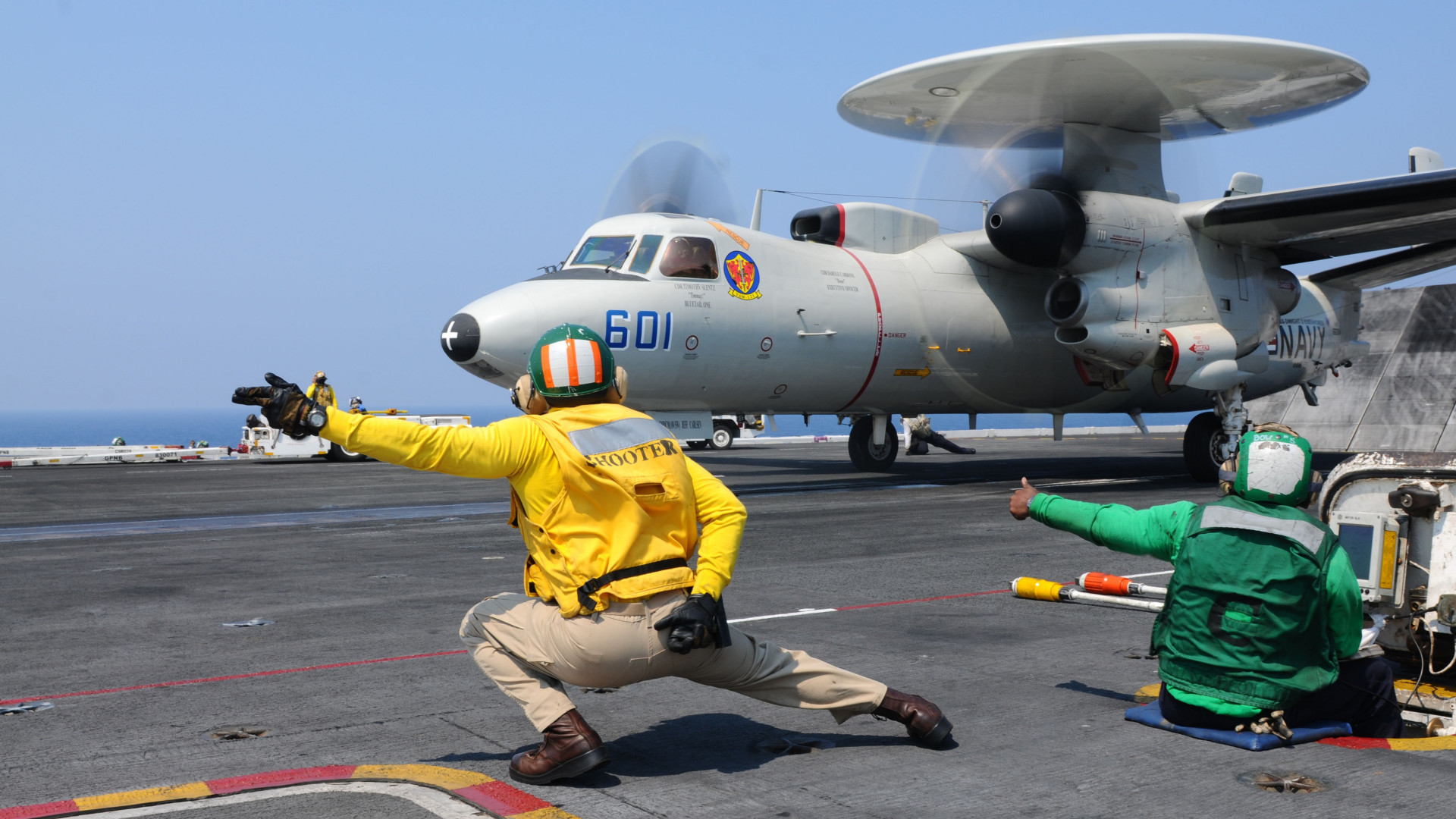 Amerikai E2-C Hawkeye elektronikus harcászati repülőgép felszállás közben (fotó: Smith Collection / Gado / Getty Images)