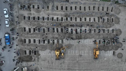 A minábi csapásban meghalt áldozatok kiásott sírhelyei (fotó: Iráni Külügyminisztérium / Reuters)