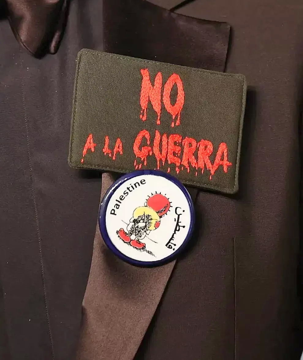 A korábban Oscar- és Golden Globe-díjas, s valójában a Mielőtt leszáll az éj című film (2000) főszereplőjeként világhírnévre szert tett Javier Bardem már korábban is látványosan kiállt a palesztin nép szabadságvágya mellett, s ehhez most az elsősorban izraeli érdekekért Irán ellen hadüzenet nélkül indított amerikai-izraeli háború is társult. A legjobb nemzetközi alkotásnak választott Érzelmi érték című film rendezőjének, a norvég Joachim Triernek járó Oscar-díjat a spanyol filmcsillag Priyanka Chopra indiai filmszínésznővel együtt adta át a hollywoodi Dolby Színházban. Ám az ünnepélyes pillanat előtt a Javier Bardem a színpadon állva, s a színház nézőterén egybegyűlt közönség hangos éljenzése és tapsa közepette angol nyelven belemondta a mikrofonba: No to war and Free Palestine! (Nem a háborúra és Szabad Palesztinát!)