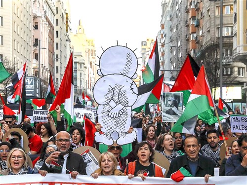 Madridi tüntetés az izraeli népirtás ellen a Handalával 2024-ben (fotó: Pablo Blazquer Dominguez)