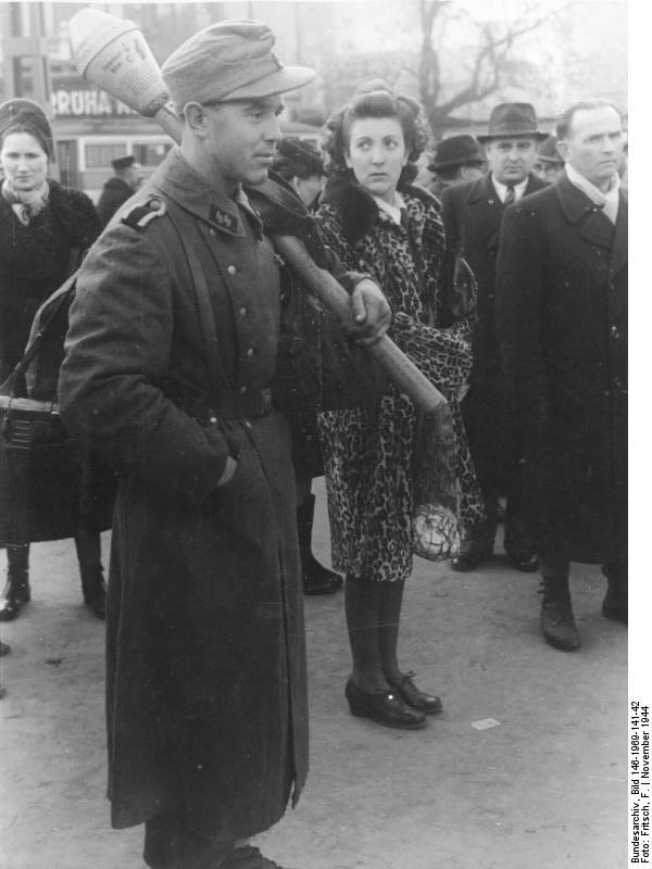 Harc Európáért egy Panzerfausttal a kézben. A kiváló fegyver segítségével az ostrom során is százszámra okozták a páncélos járműveket érintő veszteségeket a bolsevista hordák számára (forrás: Wikipédia)