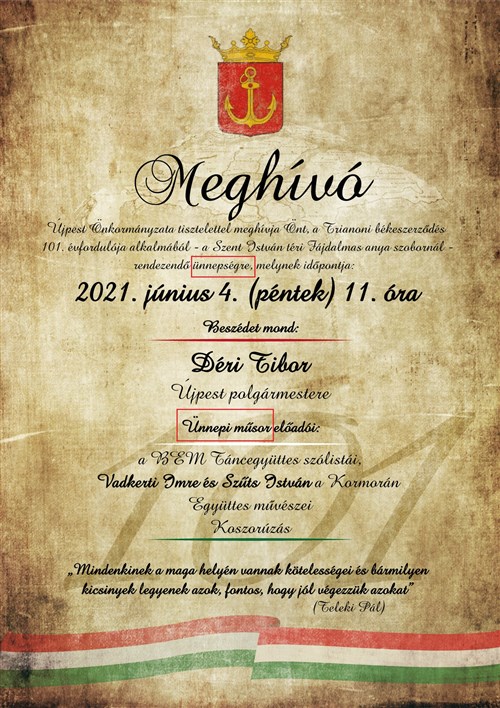 Frissítés: ünnepség és ünnepi műsor Újpesten is:
