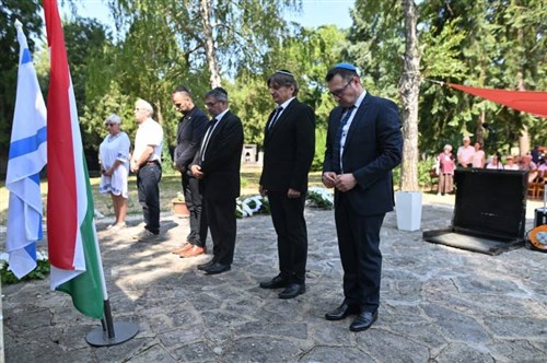 "Nyolc évtized múltán is kötelességünk emlékezni - és emlékeztetni". Heindl Péter (középen) az idei holokauszt-megemlékezésen Pécsett (fotó: mazsihisz.hu)