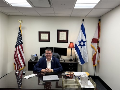 Randy Fine, akinek az irodájában folyamatosan ott az izraeli zászló, annak ellenére, hogy elvileg amerikai képviselő