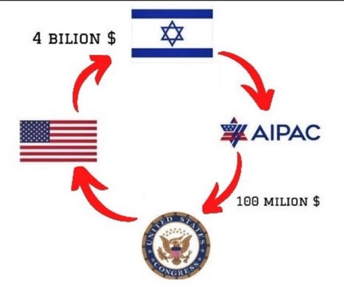 A szervezet pénzt ad az amerikai politikusok kampányára (2024-ben összesen 100 millió dollárt), ami egyúttal kóserpecsét is, jelzés a milliárdos zsidó támogatóknak, hogy ki Izrael embere. Ezeket a képviselőket bejuttatják a Kongresszusba, majd azok megszavaznak egy olyan segélycsomagot Izraelnek, ami jelenleg évi 4 milliárd dollárra rúg, és ez csak a jéghegy csúcsa. Izraelhez tehát több pénz áramlik vissza, mint amit lobbitevékenységbe “befektetnek”.