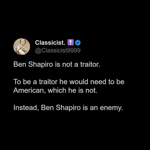 Ben Shapiro nem áruló. Ahhoz, hogy áruló legyen, amerikainak kellene lennie, de nem az. Ehelyett Ben Shapiro az ellenség
