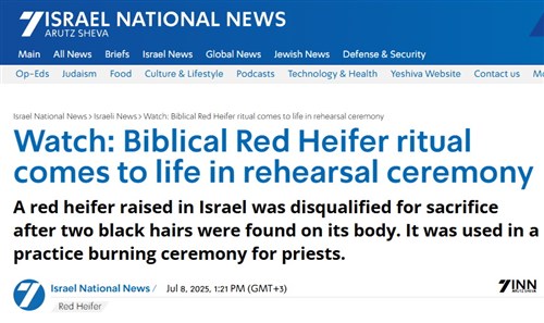 Közben Izraelben idén júliusban feláldozták az első vörös üszőt Kr. u. 70 óta. A tehénáldozat egy tisztító szertartás része a harmadik templom felépítéséhez, ami után eljöhet a zsidó messiás (aki a keresztényeknél az Antikrisztus). Csakhogy nem volt sikeres a szertartás, mert a tehénen két fekete szőrszálat találtak, ezért végül csak gyakorlásból áldozták fel.