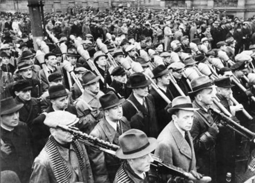 A német nép szilárdan eltökélte, hogy nemcsak az arcvonalon, de otthon is, ahol az ellenségnek sikerült betörnie a Birodalom területére, házról-házra és utcáról-utcára védekezik. Három hónappal ezelőtt azt a megbízást kaptam a Führertől, hogy több millió népi kézigránátost állítsak harcba. Ezeknek a feladata, hogy kiválóan felszerelve és kiképezve megvédelmezzék népünk szabadságát és jövőjét. A következő három hónapban számtalan hadosztály vonul fel majd kívül és belül az arcvonalakra. A csatorna menti kikötőkben reménytelennek látszó helyeken már megmutatták a német férfiak, mit jelent a háborúban az időnyerés a nemzet harci erejének mozgósítása érdekében. Az a két hónap, amit a csatorna menti kikötők hős legénysége biztosított számunkra, nem múlt el eredménytelenül. A német nemzet ismét szilárdan áll talpán. Ezt maga az ellenség is igazolja. Tüneményről beszél, új német csodáról, hogy megmagyarázza népeinek, miért nem ért véget a háború, hanem csak most kezdődik. Azt hitte, hogy úgy bánhat el velünk, mint az olaszokkal, románokkal, bolgárokkal és finnekkel. Csakhogy mi sem lelkileg, sem anyagilag nem senyvedtünk el. Szándékosan itt Berlinben hirdettem ki az első önkéntes jelentkezést a Volkssturmra. A birodalmi főváros férfiai százezrével jelentkeztek. Ilyen néptől sohasem lehet elvárni, hogy vezetői leteszik a fegyvert és megadjuk magukat. Szó sem lehet arról, – folytatta Göbbels dr. – hogy a berlini férfiakat fegyvertelenül állítsuk szembe az ellenséggel. Ellenkezőleg, arra fogok törekedni, hogy a berlini Volkssturm olyan kiképzést és felszerelést kapjon, hogy ha az eljövendő hónapokban egyszer az arcvonal valamely szakaszán válság állna be, bármikor harcba vethessük a berlini Volkssturm három vagy öt vagy húsz ezredét. A Landsturm egykor kaszákkal és cséphadarókkal szállt síkra, ma könnyű és nehéz géppuskákkal, páncélököllel és páncéltörőkkel vonul fel. A bolsevisták már megszerezték Kelet-Poroszországban az első tapasztalatokat, hamarosan az angolok és amerikaiak is kénytelenek lesznek megmásítani a Volkssturmmal szemben táplált előítéleteiket.