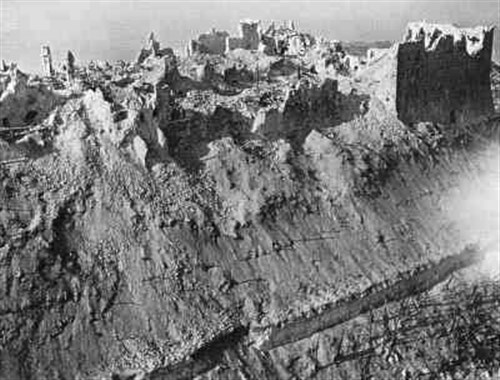 A Monte Cassino-i bencés kolostor romjai 1944. február 15-én