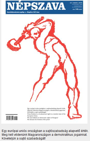 Az őskomcsi újság a vörös terroristák egyik kedvenc grafikáját, a Népszava kezdeteit idéző kalapácsos munkást tette a címlapra, így követelik a sajtó szabadságát. Értik: Rákosiék szellemi örökösei követelnek sajtószabadságot kommunista jelképpel...
