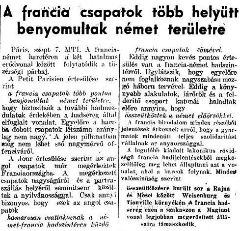 Győri Nemzeti Hírlap, 1939. szeptember 8., eredetiben itt