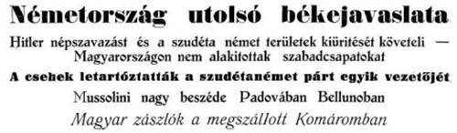 Ezekre a kérdésekre kell választ adni Európának és a párizs-környéki tekintély-államoknak, akik létrehozták a benesi államszörnyet és most nem tudnak diktálni a felnevelt fenegyereknek? Felelősségre vonja a mestert még a fércműve is? Londonnak és Párizsnak ezen a nagy téren múlik tradíciós tekintélye és felsőbbsége. Ezekben az órákban rájuk szegeződik Európa szeme és tőlük vár, követel döntést, a felizgatott kedélyek lehűtését és a közép-európai húszesztendős kór feletti utolsó konciliumot. Nem ismerjük London és Párizs szándékát, mint ahogy nem ismertük húszban sem. Egy hete forr a nagy kérdés és ők mind nagyobb kérdőjelek lesznek. Valamit titkolnak, vagy tervük van ezzel? Európa közvéleménye már belefáradt a várakozásba és lelkiismeretlenség lenne továbbhúzni az idegeket és órákra is kitolni a választ. Közép-Európa egyetlen nagy felfordulás előtt áll és az esetleges következményekért, ezrekért és milliókért, jogtalanságért és történelmi cselszövésekért a felelősség egyedül Londoné és Párizsé.