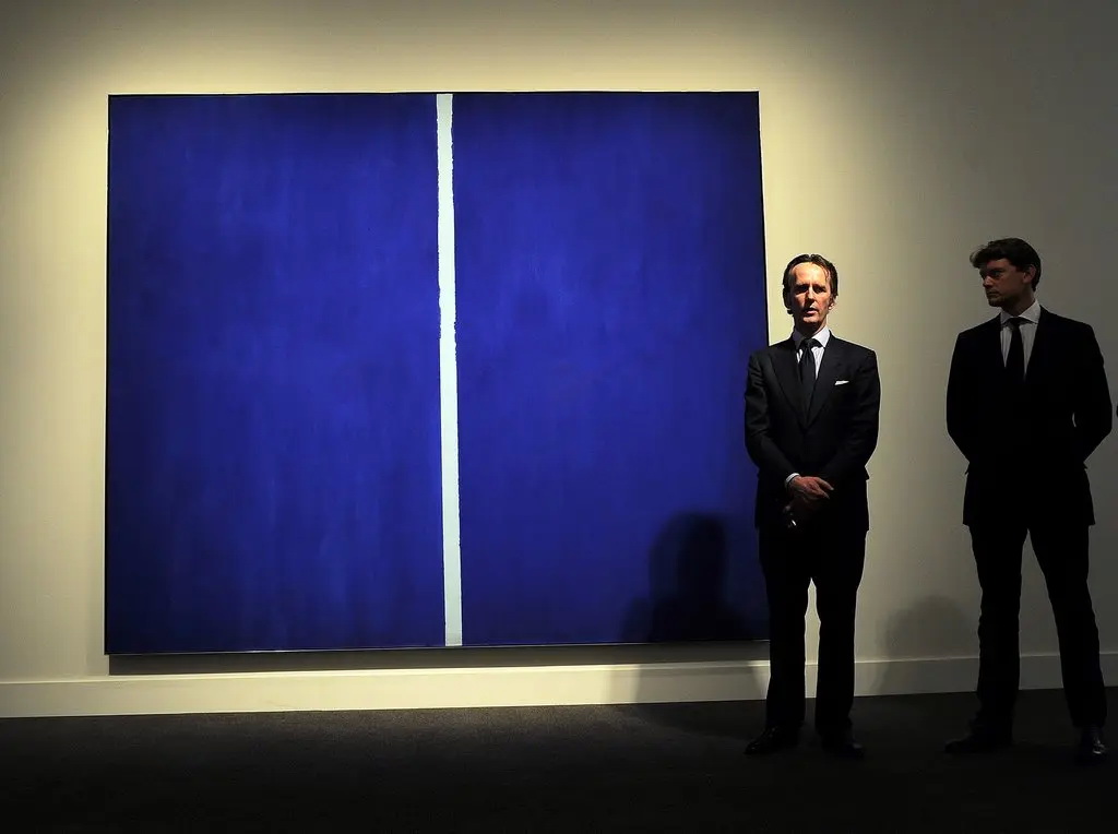 Barnett Newman 1953-as Onement VI című, tipikus jellegű alkotása 2013-ban 43.8 millió dollárért (14,7 milliárd forintért) kelt el (forrás: nytimes.com)