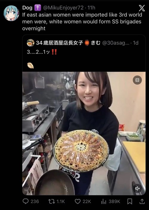 Ha a kelet-ázsiai nőket úgy importálnák, mint a harmadik világbeli férfiakat, a fehér nők hirtelen SS-brigádokat alakítanának