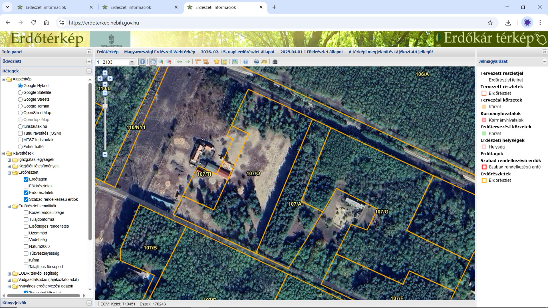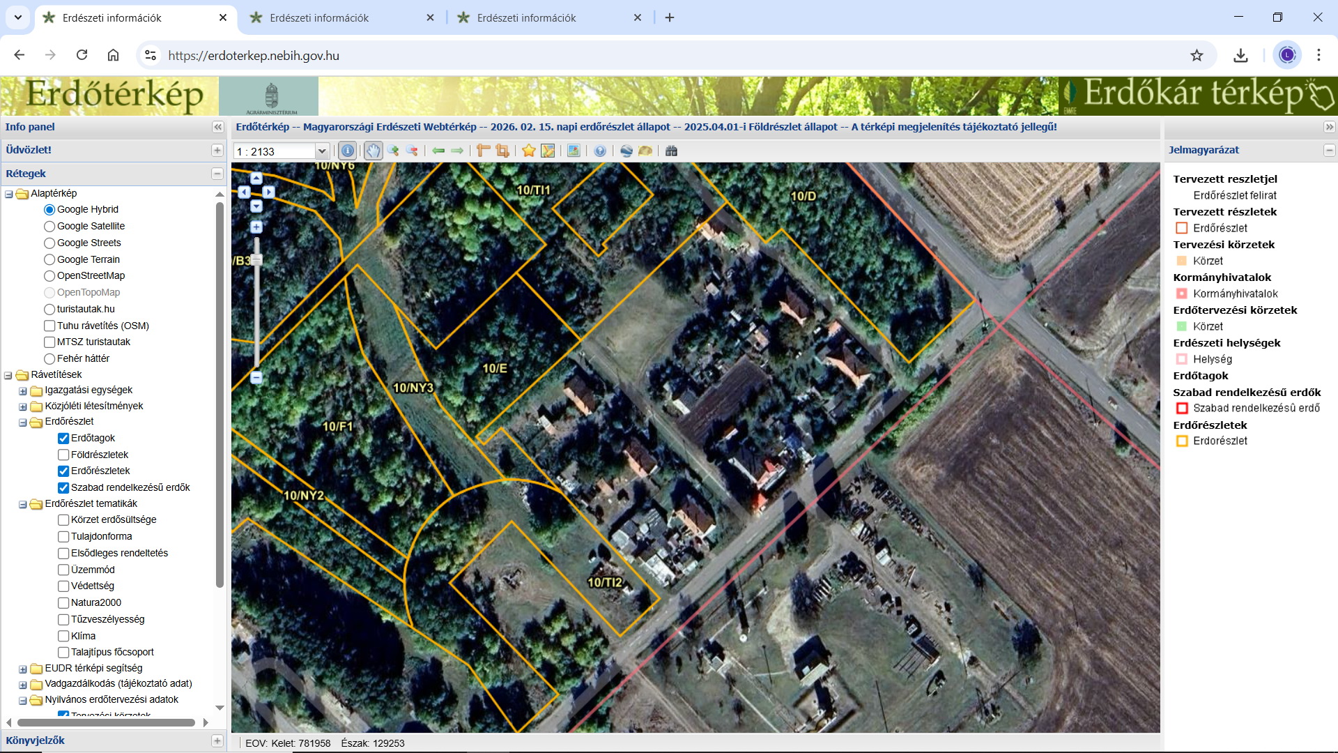 Az https://erdoterkep.nebih.gov.hu/ oldalon található az Adattárnak a térképi állománya, légifotókkal egybevetve. Az erdők azonosítása község, tag, erdőrészlet jellel történik (pl. Almamellék 5 A erdőrészlet), ezen az oldalon bárki megtekintheti az ország valamely erdejét, lehet rajta szükség szerint beállításokat végezni, erdőrészletjelre keresni, zoomolni, égtájak irányába eltolni.