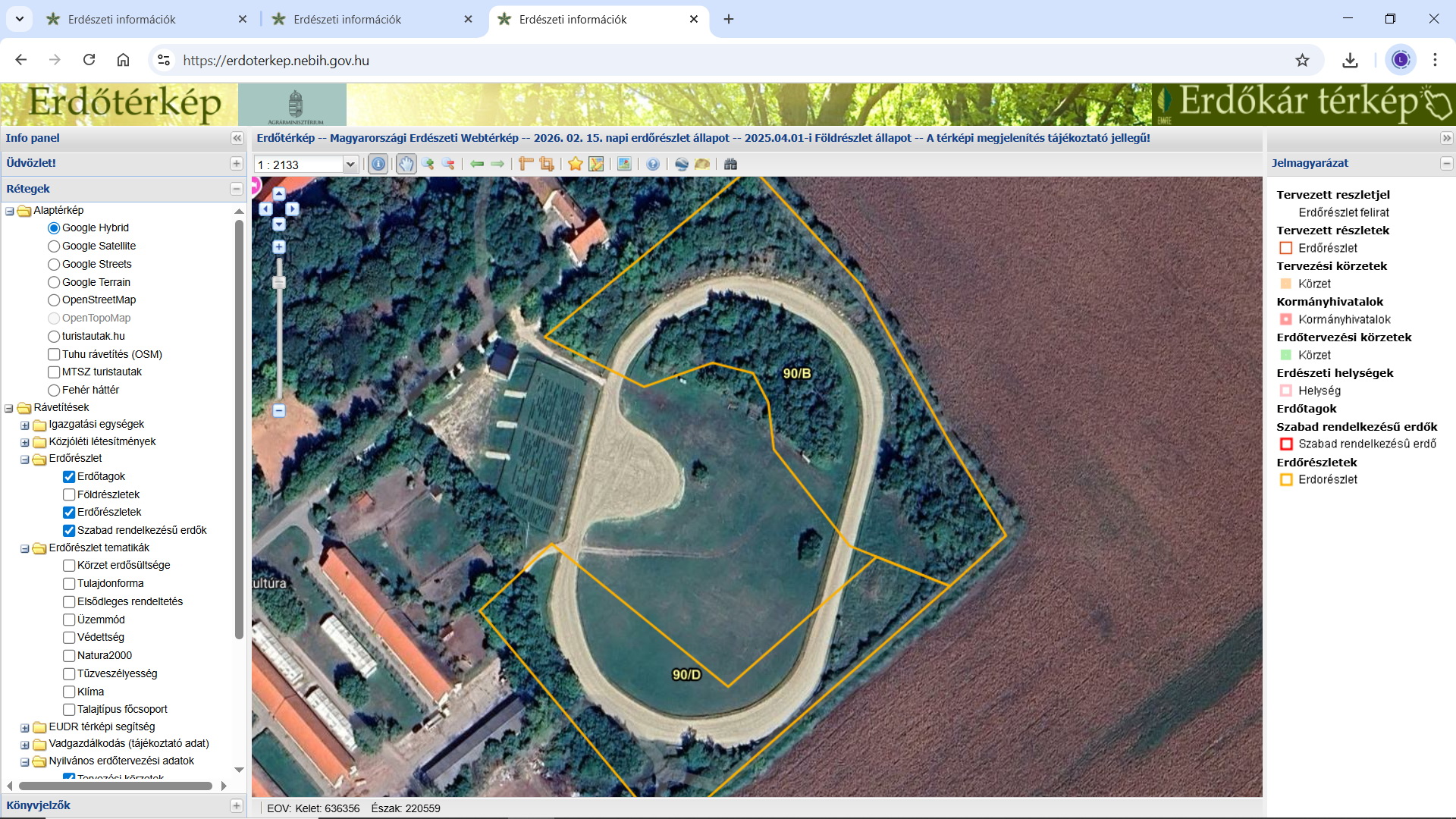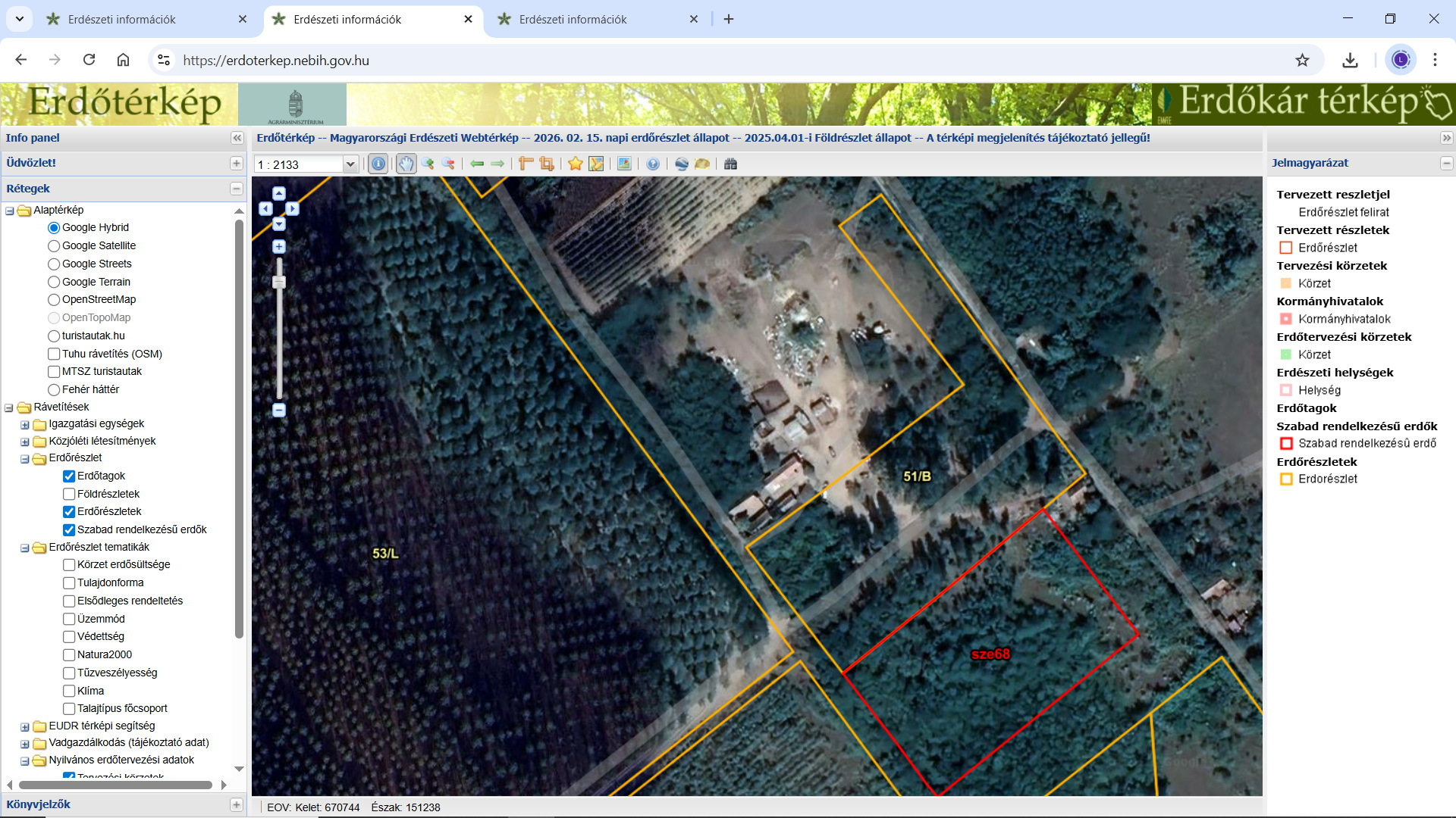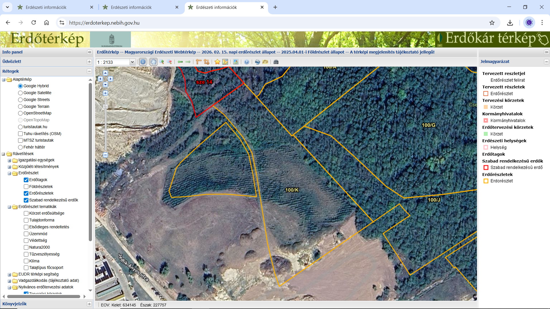 A helyzet egyébként nagyságrendekkel rosszabb, mint ami a légifotókról látható, mert csekély eltéréseket az nem ad vissza, illetve fentről sokkal nehezebben látható a valóság, leginkább a lombkorona eltakarása miatt, ami meg is marad, mert a más által használt rész faanyagához az erdőgazdálkodó nem tud hozzájutni. További két jellemző példa az, hogy belterületek, volt zártkerti határok mentén egymást érik az elkerítések, ami szinte csak geodéziai felmérés után állítható biztonsággal, valamint, hogy vannak, akik nem tudatlanságból, nemtörődömségből, hanem túlzott önbizalomból tesznek a jogszabályokra, nyilván, mert valahonnan felső szinten bátorítva vannak. Ehhez két területet másolok be alább.