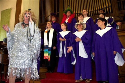 A protestáns Egyesült Krisztus Egyháza (UCC) akoljába tartozó First Church Somerville nem ritkán transzvesztitákat dicsőít
