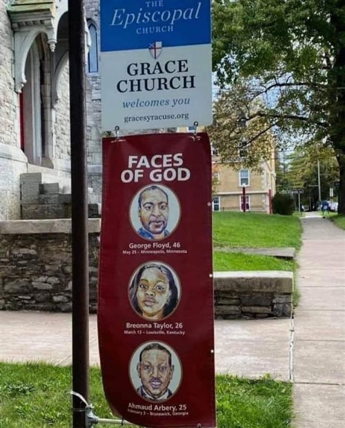 Az amerikai Episzkopális Egyház „Isten arcai”-ként ábrázolja az állítólagos fehér rasszizmus éppen aktuális néger mártírjait