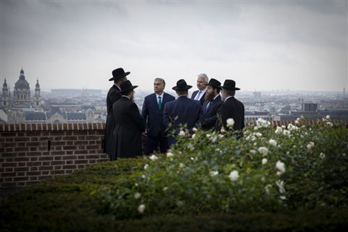 Orbán Viktor kormányfõ fogadja David Laut, Izrael állam askenázi fõrabbiját (b, takarásban) a Karmelita kolostor teraszán 2019. november 18-án. Mellettük Semjén Zsolt miniszterelnök-helyettes és Köves Slomó, az EMIH vezetõ rabbija (forrás: MTI/Miniszterelnöki Sajtóiroda/Fischer Zoltán; szombat.org)