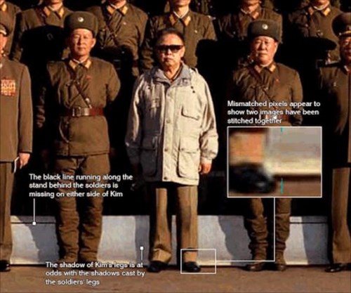 2008: A nyugati média kérdőjelezte meg a Kim Jong-Il-ről készült fotó valódiságát. A közeli képen látható, hogy nem passzol az árnyék, de más problémák is vannak a képpel. Egyelőre nem nyilvánították hamisnak a felvételt.