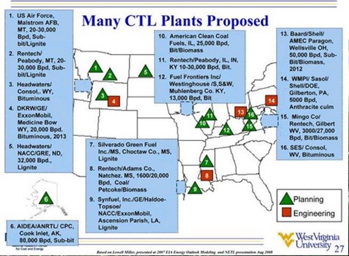 A képen a leendő amerikai CTL-üzemek látszanak: