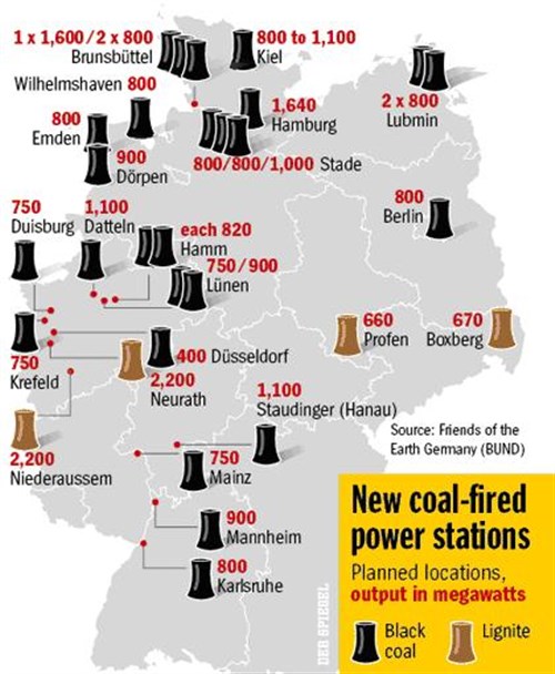Az alábbi képen a tervezett új szénerőművek láthatók. Így az atomerőművek bezárása (egyszerű nyelvet beszélve) zöld és környezetvédelmi szempontból egy jó pofon a szarnak.