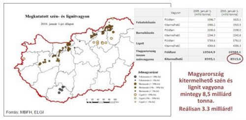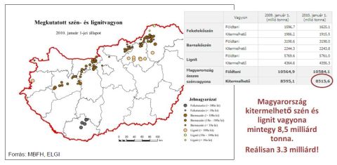 Miért is? Mert az alábbi dokumentumból kitűnik, hogy itthon hagyományos módszerekkel kitermelhető szén mennyisége 3,3 milliárd tonna. Ha ezt cseppfolyósítással üzemanyag gyártására használnám, akkor egy nagyon alacsony hozamot feltételezve (1 tonna szénből egy hordó szintetikus üzemanyag, gyakorlatilag kétszer ennyit tudnak elérni), akkor a széncseppfolyósítás világban tapasztalt profitábilitása mellett ebből a magyar állam kétszer visszafizetné az államadósságot!